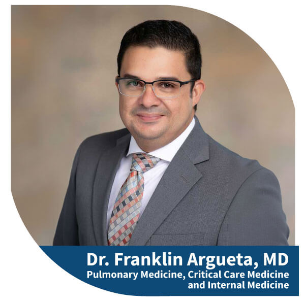 Dr. Franklin Argueta is board certified in Pulmonary Medicine, Critical Care Medicine, and Internal Medicine. He completed his residency and fellowship training at the University of Texas Health Science Center at San Antonio, where he gained extensive expertise in managing complex respiratory and critical care conditions.